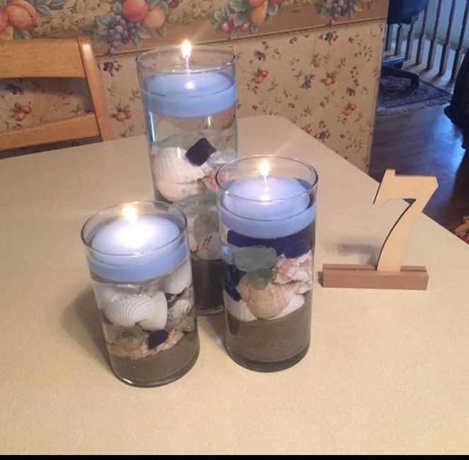 FH and I doing a trial run this evening with our floating candle centerpieces. We have tried a few things here and there to put in the vase, but haven't exactly lover anything yet. So! I would love to see everyone's floating candle centerpieces for...