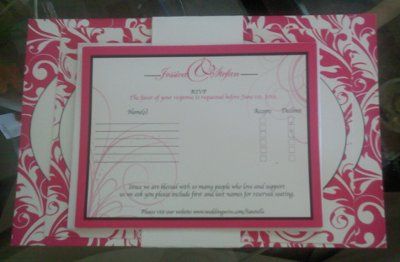 I was working on ideas to bundle my invitations, i am not sure if i like them or they look cheesy. I just threw these together and i would buy correct size ribbon for the first one, and black card stock for the 2nd one but the sharpie did the trick...