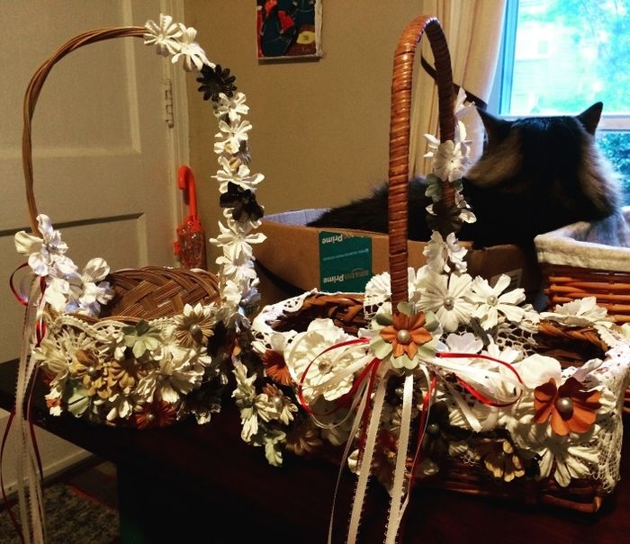 I’m looking for flower girl basket ideas for my 2 nieces. They will be wearing ivory lace dresses with a navy sash. Attached is my bouquet inspiration pic, the flower girl petals will be a color that compliments mine.