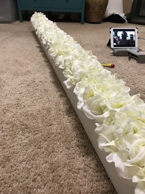 I'm currently making a planter box for the head table. It's 5 feet and 2 inches long. It'll end up being about 30$! I'll share a photo when it's finished!