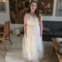 2820 days agoWaiting patiently for my veil to come in, but had my dress on at the fitting today to see the bustle, flower crown, belt, and earrings in action. What are your thoughts? I’ve fallen in and out of love with this dress since many times! I still hate my...