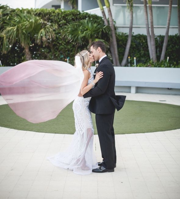I have a blush colored gown and when I first tried it on they paired me with a gorgeous ombre-pink veil. The pink really doesn't show up until the VERY bottom of the gown and I am wondering if it is too much or if it is a cool touch. It is cathedral...