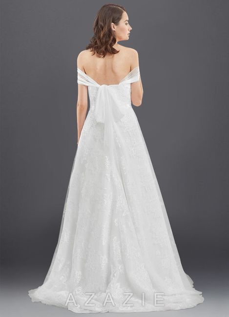 the back the side the back Halter Front I think is going to be my dress. Not me in it . Looking for veil ideas. What kind of veil? Length? Plain? Lace? Jeweled? The straps on this dress are tulle and are versatile. Many different ways to wear. Its...