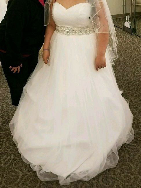 I can't believe I found it so early on and at David's Bridal for a great price ($450)!! It is safely being stored at my mom's, so my fiance won't sneak a peek. I still need alterations and my accessories but I love it!! I wanted a flowy bottom and...
