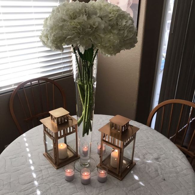 I spent this weekend with my bridesmaid looking at so many centerpiece options, I am overwhelmed and confused! Share pics of your centerpieces! I need inspiration from real people, not Pinterest things that look impossible to actually make 😂