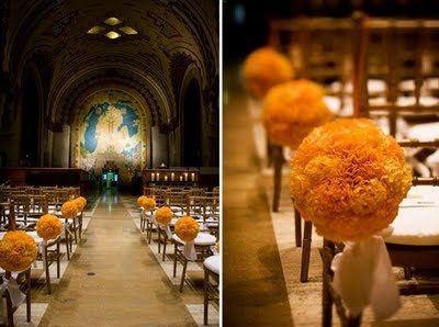 your isle decorations. not the aisle runner but the decor for the aisle. i think i know what i want but im not sure how it will work with the peu (sp?) in the church.TIA