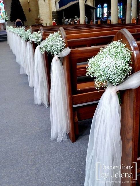 So my question is how are u decorating the aisle of the church?? I need help my church is so bright inside and is mainly white. I was thinkong of rolling a aisle runner down and doing flowers on every other pew but im unsure if it.