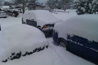So this has been within the last 24 hours... We had NO snow until yesturday at noon and it has been snowing sense... We got almost 3 ft and now they are saying we will be getting another 14"-17" by tomorrow morning... GRRR... How is everyone else's...