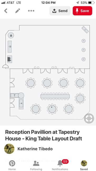 I'm trying to get a floor plan for the reception and could really use some input. I will have the Bridal table on one end and on the opposite side of the room is the kitchen so the food will go on that end but I'm unsure on where to have the dance...
