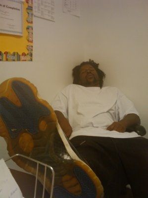Out of my office, at the moment FS is out of work beside doing his side job of working on motorcycle, today he had no bike to work on so he at the preschool I own and this is him currently