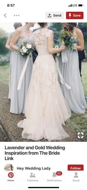 Any ladies wearing a blush wedding dress. Im still trying to figure out colors, FH wants to wear a navy suit with blush tie, Something like this. My only concern is, if my dress is blush what color would the bridesmaids and groomsmen wear for a...