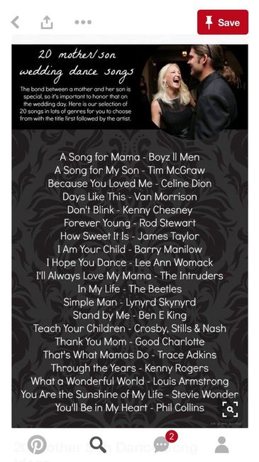 So, the wedding is this Saturday, and we have yet to still find a song for the Mother/Son dance. My FH lost his mother 14 years ago, and my mom honored his request by dancing with him in her place. Are there any songs out there that could work for...