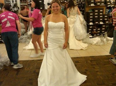 I found my dress!! I drove to NYC from Boston Thursday night, got in at about 11:30, hung out all night without sleeping, headed out to filene's Basement around 3:30 am. When we got there, we were about the 50th people in lie (not too bad) so we hung...