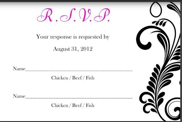 Hello ladies, So i know this topic is floating around, but I'm trying to get some advice on the fly here Our wedding is semi-formal. I need help with our RSVP wording. We have 3 options for dinner and need it to be returned with the RSVP for the...