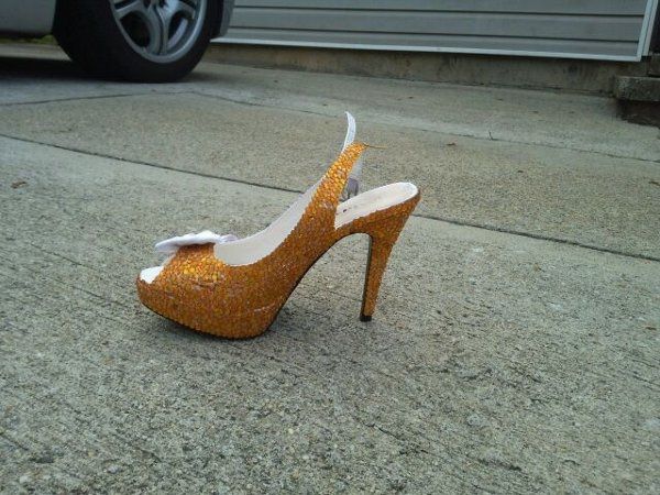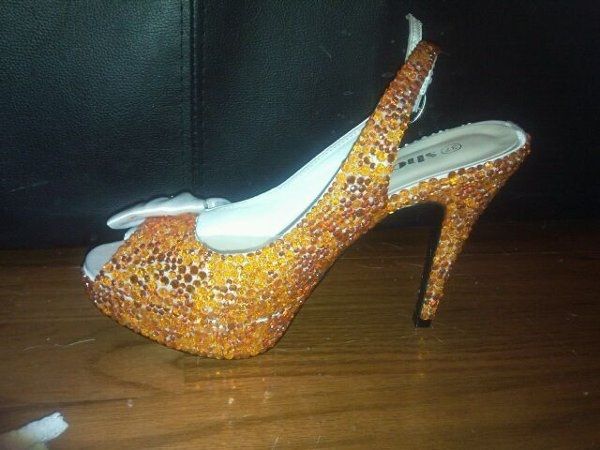 I need opinions on what you all think. I have made these shoes orange myself and now I would like everyones opinions on if I should leave the bow white, rhinestone it Orange or rhinestone it Black. Thanks