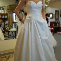 5171 days agoHi all! Below is my dress. I'm having serious issues trying to figure out what kind of jewelry to wear with it. My dress is a Paloma Blanca 4165. It has a flower embellishment on the hip and in the middle of the flower has different pearls/crystals...