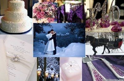 hey everyone! i am getting married on christmas eve. and i just want some ideas on what i can do. for example, decorations, table decor, favors, etc.... my colors are purple and red. the theme is winter fairytale.