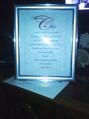 I have been working on my place/escort cards, boutonnieres for the GM and fathers, and letters to hang off the front of the head table. Here are some pictures. I still have to finish the place cards and boutonnieres and add ribbon to the letters....