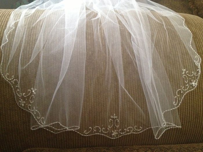 I don't know the designer of the veil i want but i want a sparkly trim and elbow length . 076-DE (any guesses) was the number on the tag in the store for $240. Im hoping i can find online cheaper! Sorry the picture is in black and white....Im looking...