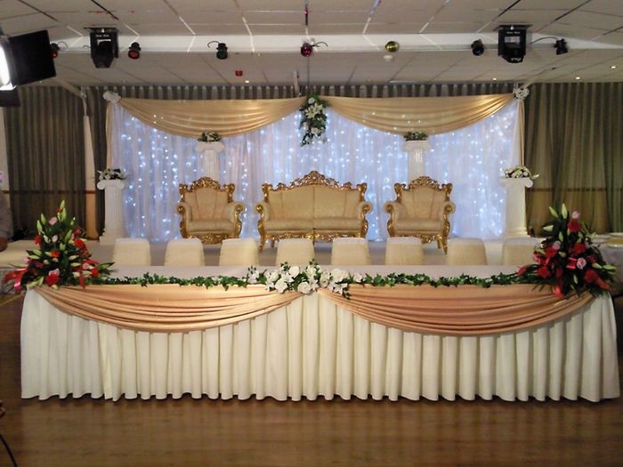 My bridal party tables will be set up round with the rectangle tables on side (see 1st pic). They will then be white tablecloths with the navy blue runners (2nd pic but different colors). My guests tables will be white with a blue overlay (3rd pic)...