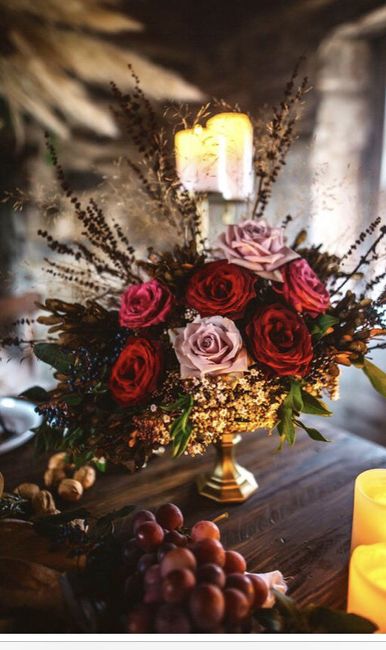 I’m having a difficult time finding already made centerpieces that have that sprouted our look with lots of greenery and a dark red. I found a picture on Etsy and almost bought it but it turns out the flowers didn’t come with the purchase just the...