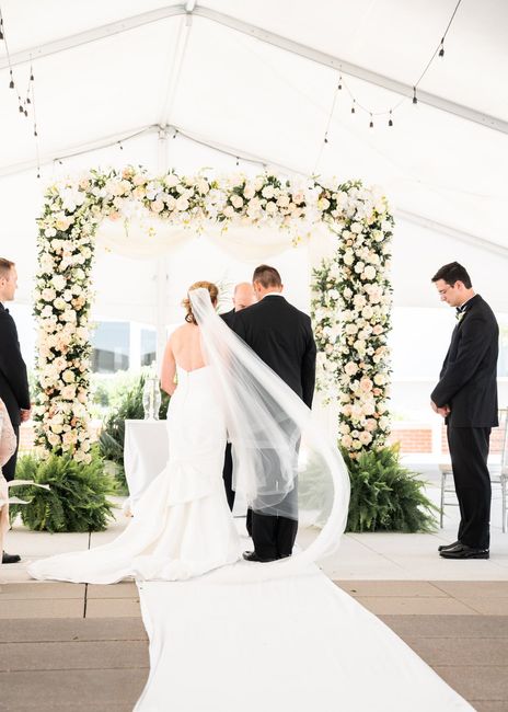 Did anyone have issues with their arch falling over either due to the weight of the flowers, wind, or both? My florist said that her flowers are arranged in some kind of water bag (not sure exactly what she said/the name of it), but they will be...