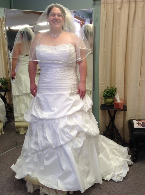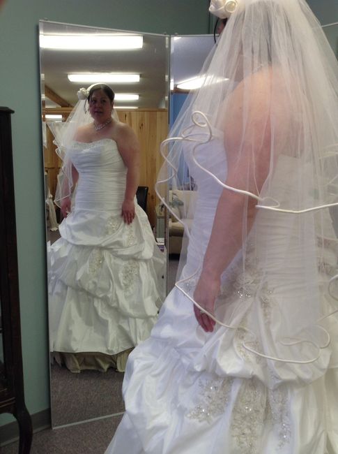I am in the process of losing weight and went to look at dresses the other day with NO intention to buy. I wanted lace with sleeves, and an off white/cream color. I ended up with a white Maggie Sottero Helena. I almost started crying when I put on...