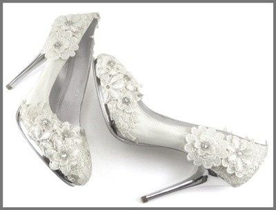 How many of you are doing colored wedding shoes, glammed up and blinged out shoes, or Ivory peep toes? I am thinking of doing Mint Green Peep toe heels, with a little razzle dazzle.