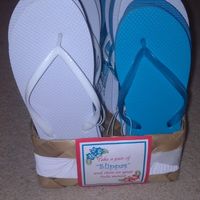 4170 days agoI'm doing a couple baskets of flip flops for my guests to dance in (and around here most people call flip flops slippers or "slippas" in more of the accent). In pictures on pinterest it looks like most people tie the pairs together and maybe put...