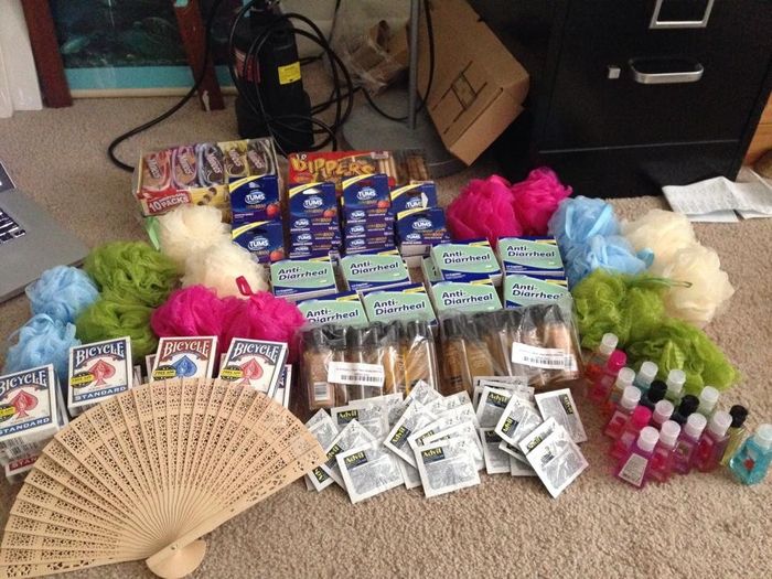 I saw that Jennifer mentioned welcome bags in lieu of favors for her destination wedding and that reminded me that I haven't shared mine! I finally got these bad boys painted. It was time-consuming but not as much of a PITA as I thought it would be....