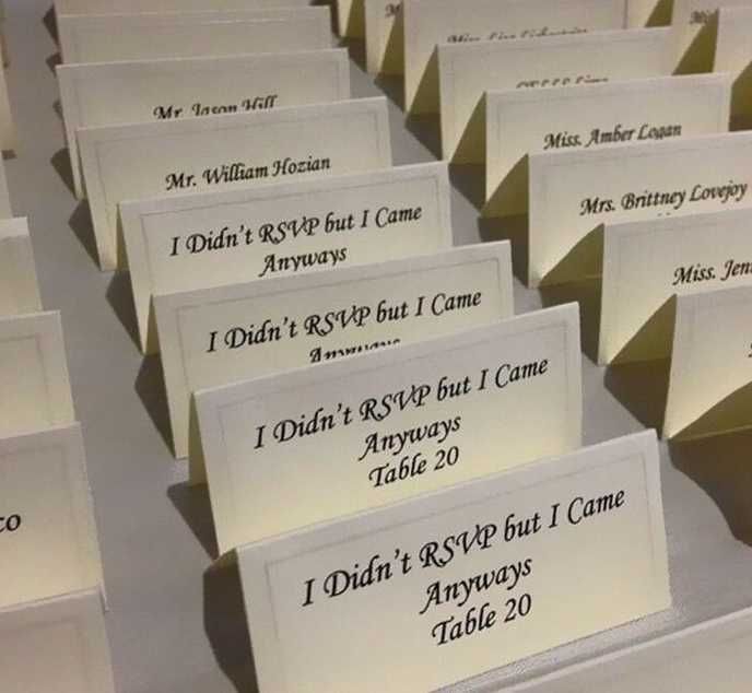 So many of you have been posting about late RSVP's and people showing up that DIDN'T RSVP. I just had to post this picture I stumbled on. Made me laugh - hope it makes your stress a bit less.