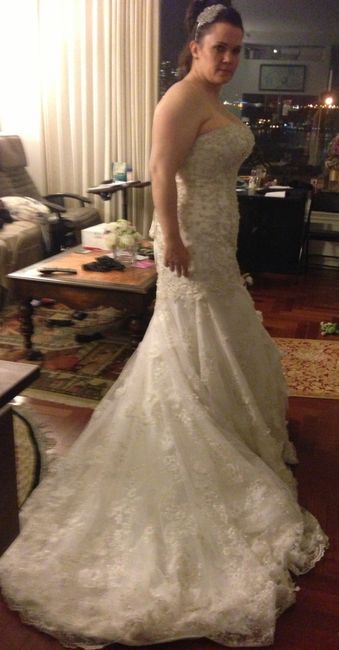 So my dress is a Davids Bridal WG3316 and although I initially wanted a mermaid/fit and flare dress, I fell in love with the ball gown I had my seamstress add buttons where the zipper is (dummy buttons ofc), as well as add a little more lace...