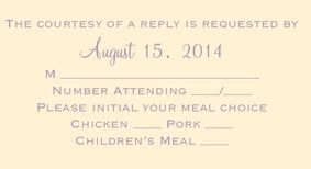 This is the rough draft wording on my RSVP's What I am wondering is does it look ok, is there something I should change etc. Also when people mark done a meal selection how do you know who has what I'm stressing out about this and I know that I have...
