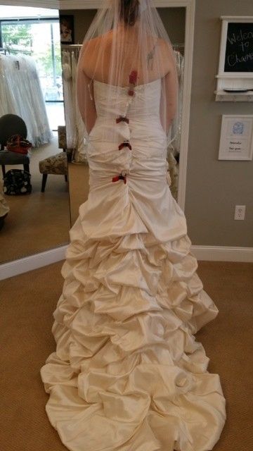 I haven't been able to share my dress yet because I've only ever used mobile so now I have to share my dress and I want to see yours!!!! In these pictures the dress is all pinned up for alterations and my straps aren't right so it looks a little off...