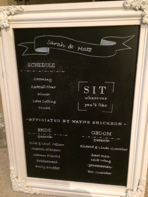 I have AWFUL handwriting so I asked my MOH to write out the chalkboard program that we will be putting on an easel and draping with flowers at the ceremony. I'm so excited, she did such an awesome job! On top of that my two girls took me out for a...