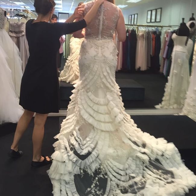 I know this is done all the time but I love seeing everyones dresses! Here is mine it has pockets and I love it. Sorry about the horrible angle my soon to be step daughter was sitting down.