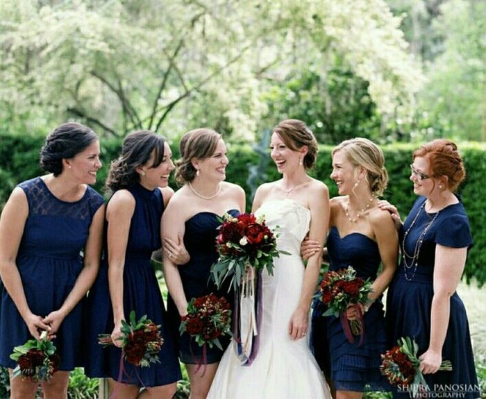 When I first started planning my wedding, I never saw the Dusty Blue & Cranberry color theme. I recently saw it and fell in love. Problem is that my bridesmaids already have their dresses (pic included). The dress is the color "ice blue" from Davids...