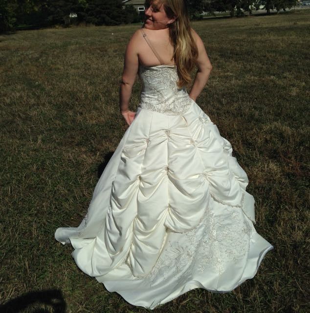 Show me your wedding dress. I am heavy on the top. Looking for a nice dress. Any ideas.