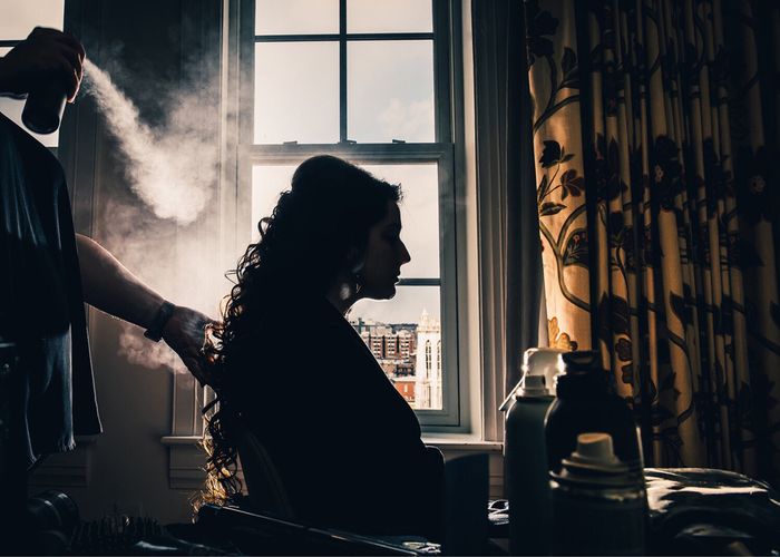 Covid and some other stuff has got me down. Cheer me up by posting pics of YOU (not a model, it's too fake) in your dress? It would be a nice lift. Here's mine at my final fitting and one getting ready with my girls on game day.See that bridal stress...