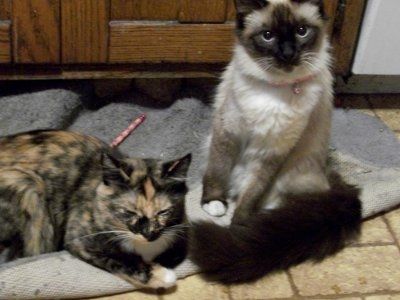 Here are my babies...Tilly the striped one and Buster the black one. They are Maine Coons.