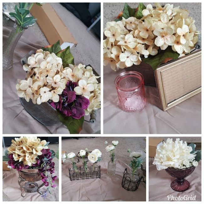 So I am wondering if you can have multiple different centerpieces? So I originally was going to do a Mason jar centerpiece with babys breath and a couple lilac Roses (picture below on what it would sort of look like, but with our wedding colors) But...