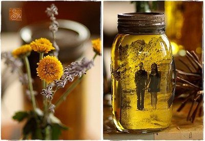 I'm looking for some Ideas for Centre pieces that will fit my rustic country themed wedding. I am using Mason Jars but can't decide what to do with them.......any ideas