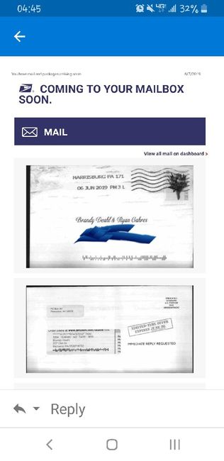 First of all I'm so pumped to get my first RSVP yesterday even though it was from one of my bridesmaids it was still fun. I have the daily mail preview so I knew one came but had to wait for mail to be delivered to see who RSVP'd. This coming Tuesday...