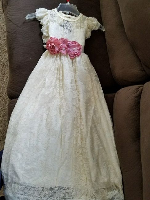 My daughter Flower girl dress came in and it's beautiful! Matches my wedding dress perfectly tell me what you think. Show me your dresses!!