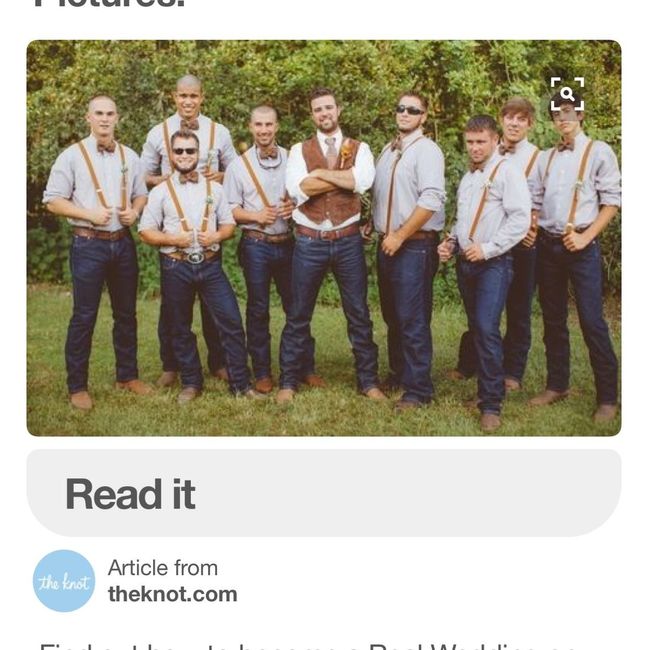 Show me what you're working with! I'm looking for inspiration on groom/groomsmen attire.. Throw in ring bearer attire if you've got it. Please and thanks! I feel like I'm slacking, but it's fiiiiiine.