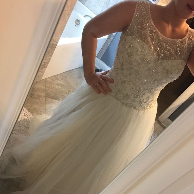 After not knowing what kind of dress i wanted, I knew this was the one when I tried it on. The sparkle, the lace, everything about it took my breath away! Can’t wait to see my fiancé’s face when I walk down the aisle! Now let’s see yours!!!