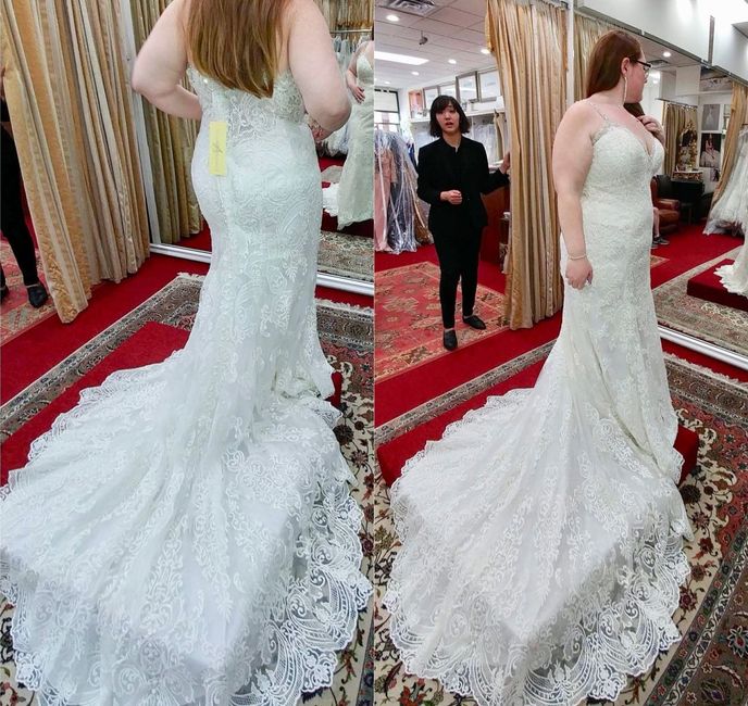 2902 days agoI had my first dress fitting yesterday and I am even more in love with my dress!! It needs to be taken in quite a bit but here are some photos 😊😊 After alterations and a little shape wear, it will be perfect for me!