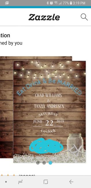 I am so excited to finally announce that we have all finally decided and chosen a wedding invite!! Fh,my daughter and I all love this one and think it's perfect! My only problem is, do we leave the eat drink and be married white or make it blue? And...