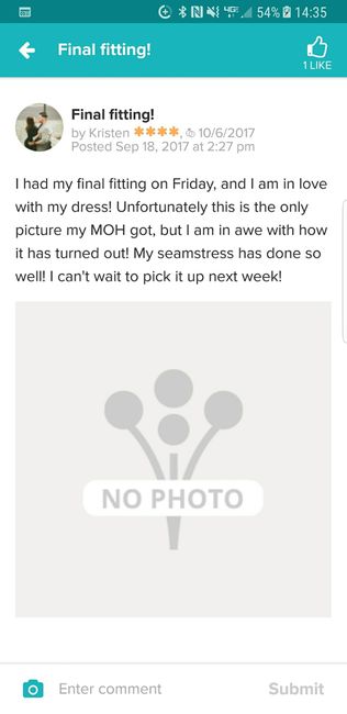 I had my final fitting on Friday, and I am in love with my dress! Unfortunately this is the only picture my MOH got, but I am in awe with how it has turned out! My seamstress has done so well! I can't wait to pick it up next week!