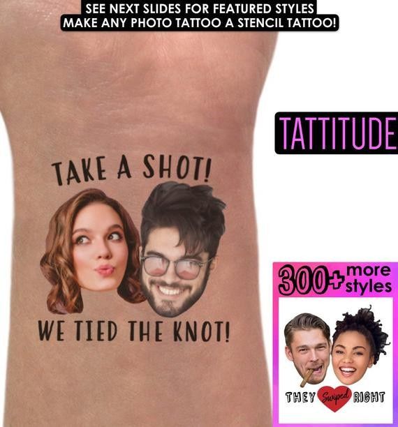 Hello, My fiance and I are both heavily tattooed and I just found an awesome party favor idea on etsy. You send them a picture of yourself and they send you whatever amount of temporary tattoos of your picture with a cute quote above or beneath it. I...